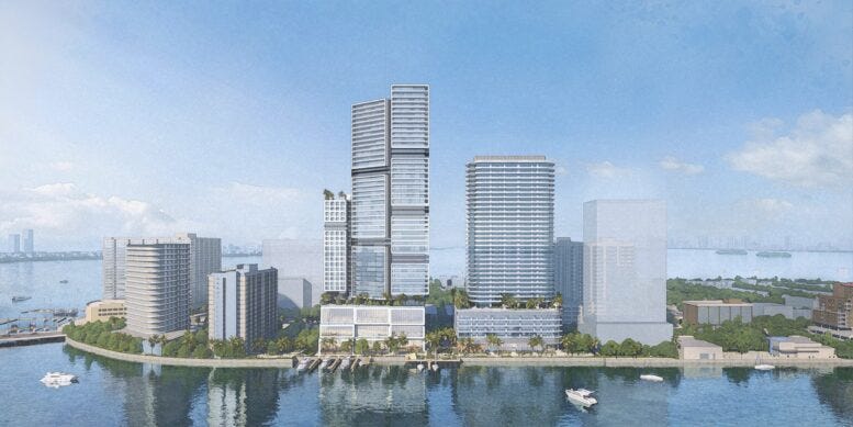 The Bigger Picture: In a landmark 2022 approval, Sunbeam secured a Special Area Plan allowing up to 7.3 million square feet of long-term development across approximately 14 acres, including nearly 1,900 residential units, 300 hotel keys, and major office and retail components. Heights on the island can now reach 450–650 feet, unlocking a true skyline. Sunbeam also committed to public benefits such as open space, infrastructure upgrades, bayfront access, and temporary facilities to support municipal services during redevelopment.