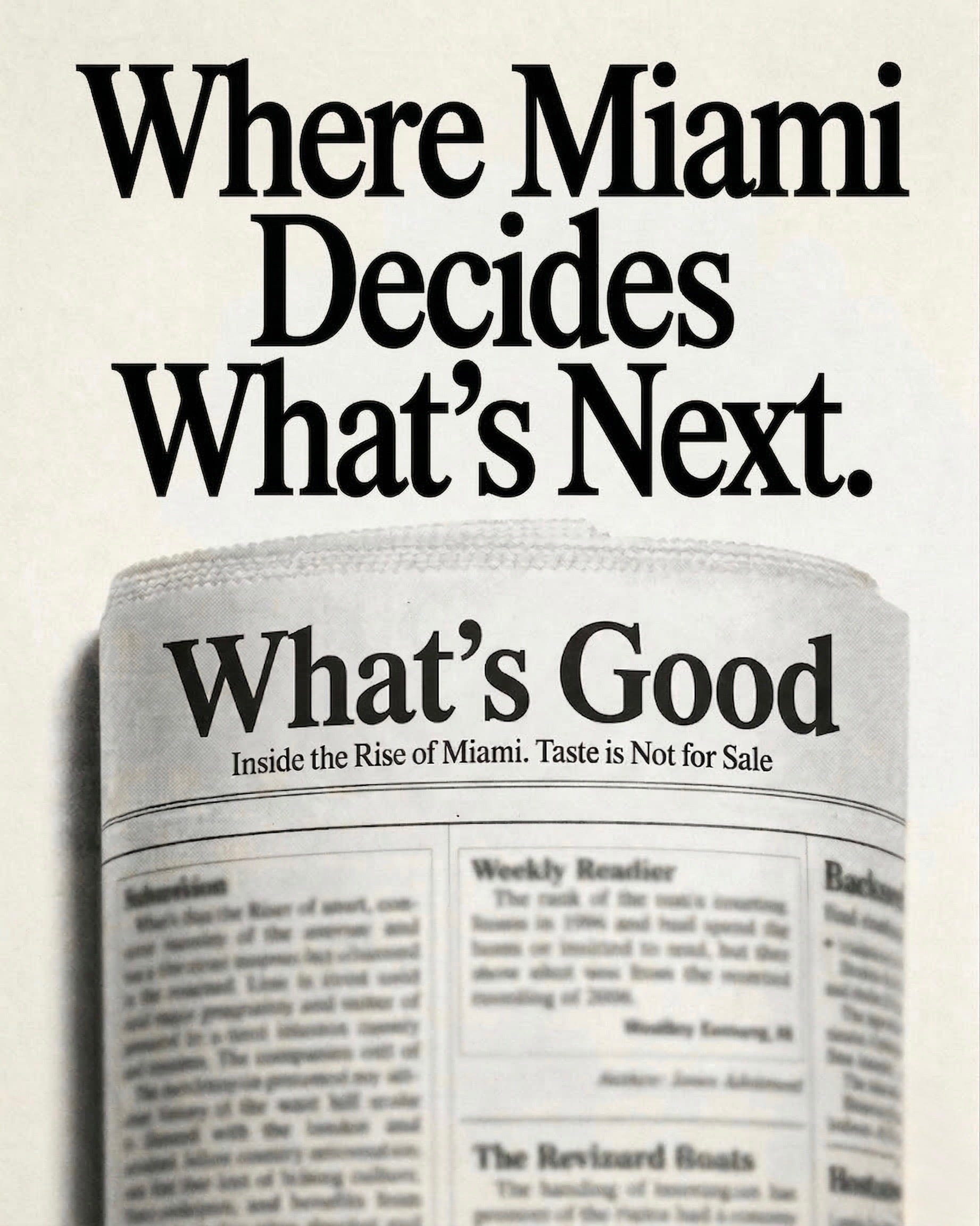 Miami was not built by people who waited for permission. This is the wild west. This city rewards the ones who move. Trust yourself. Make the call. The opinion you need most is your own.