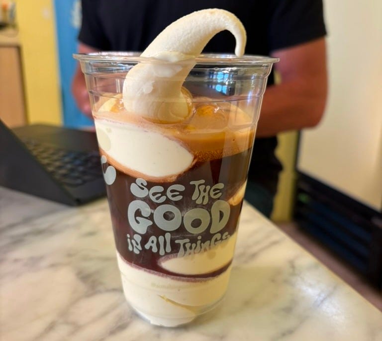 There are also Mini cones for the purists. Fresh-made warm Sundrop mini doughnuts for the adventurous. And the greatest affogato ever, vanilla soft serve with a double shot of Sunshine espresso poured right over the top. I’ve had them in Rome. I’ve had them in Milan. This one might be the best in the world.