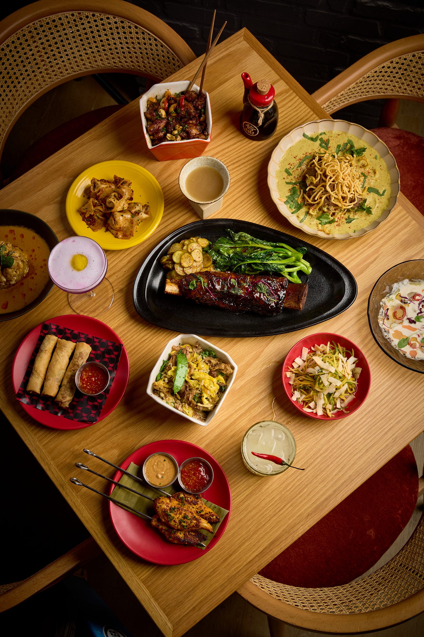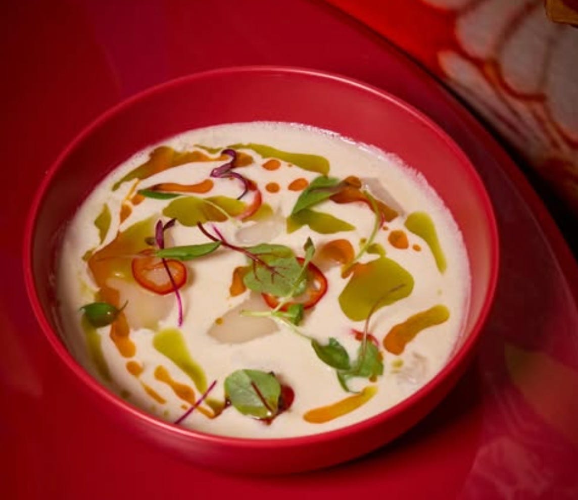 The Scallop Crudo is quite possibly the best dish we have eaten in 2026. Full stop. The Khao Soi Lamb Neck, egg noodles, crispy noodles, bean sprouts, is the kind of bowl that makes you cancel your plans and order another. The Duck Fried Rice was perfection in the most unfussy, confident way a dish can be perfect. And the Wasabi Cabbage Salad, Korean pear, apple, wasabi vinaigrette, we found ourselves wishing it was bottomless. Olive Garden style. No shame.