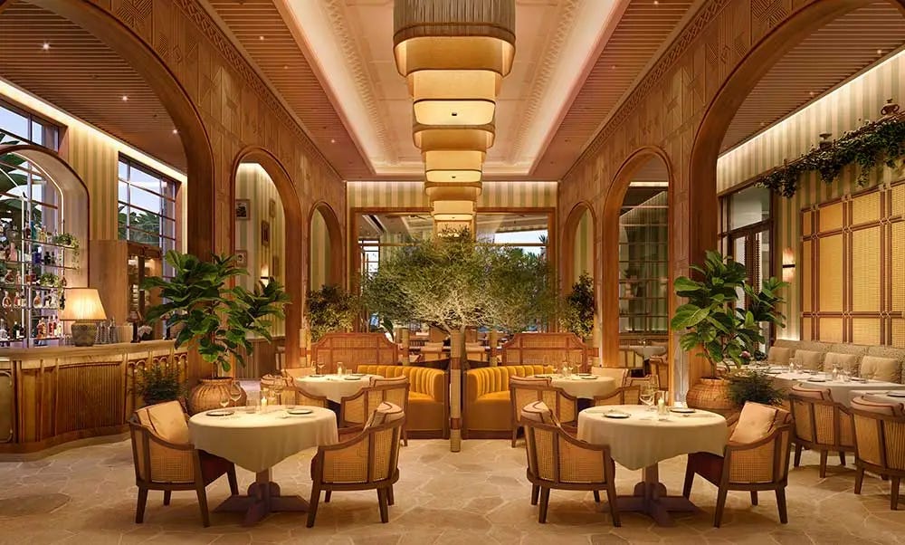 Four food and beverage concepts anchor the property, including the resurrection of the Rose Bar, once the most electric room in South Beach, where Hollywood royalty and Miami’s creative class shared the same barstool. Alongside it, two concepts from Paris Society making their American debut: Gigi Rigolatto, a high-energy Italian restaurant built around Mediterranean warmth, yellow Siena marble, and long lunches that have no intention of ending, and Mimi Kakushi, an intimate Japanese concept on the fourth floor inspired by 1920s Osaka, available exclusively to members and hotel guests.