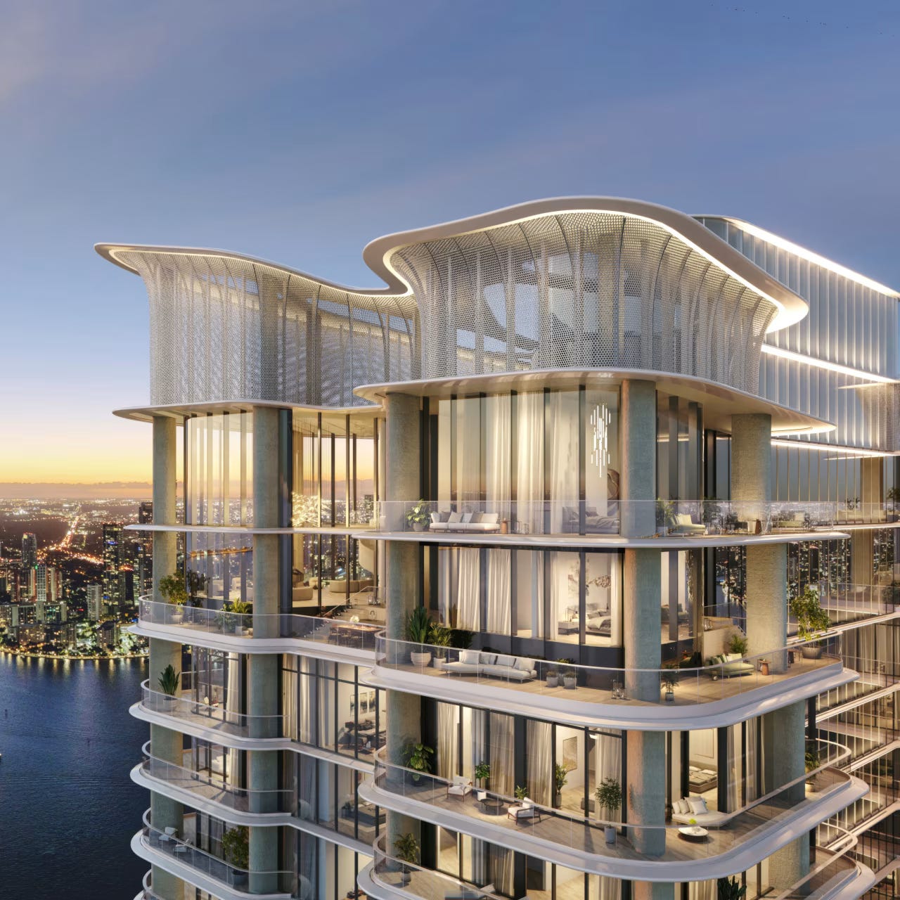 Each roughly 8,000-square-foot home sits on the 66th floor, five bedrooms, dual kitchens, a library, sweeping terraces, and a private outdoor lap pool overlooking the ocean. And none of it exists yet. The project doesn’t deliver until 2030. Groundbreaking hasn’t even happened.
