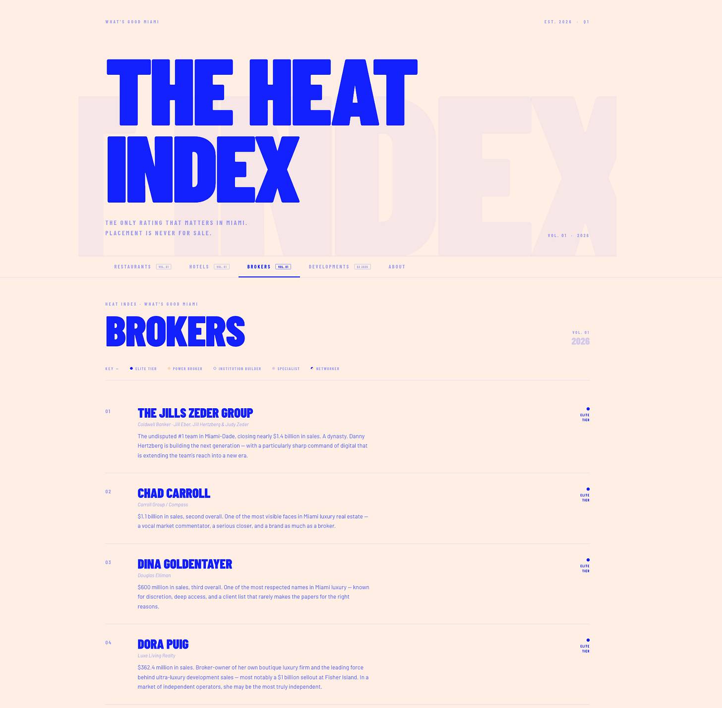 The Broker Heat Index — all 25 names, the tiers, the write-ups, and why each one earned their spot — is live now on The Heat Index.